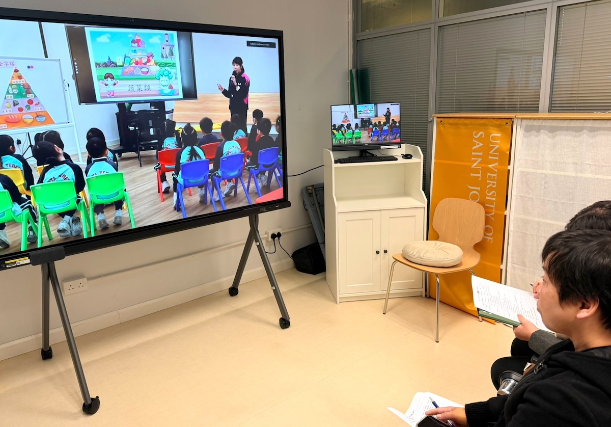 鑒於幼兒注意力易受干擾的心理發展特點,本次活動在觀課模式上打破了傳統「推門聽課」的現場觀摩形式,轉而利用實時視訊傳輸,安排大學導師及觀課教師於獨立的空間進行同步觀課。這一安排充分體現了聖大教育學院「以學生為本」的核心教育理念。通過物理空間的隔離,最大程度地減少了陌生聽課人員對幼兒課堂的干擾,確保孩子們能在最自然、放鬆的環境中學習與互動,從而呈現出最真實的課堂面貌。在教學展示結束後,教研團隊針對教學目標的達成、師生互動的質量以及幼兒的學習反應進行了深入的剖析與反饋。這種「即時反饋」的機制,極大地提升了教研活動的實效性。