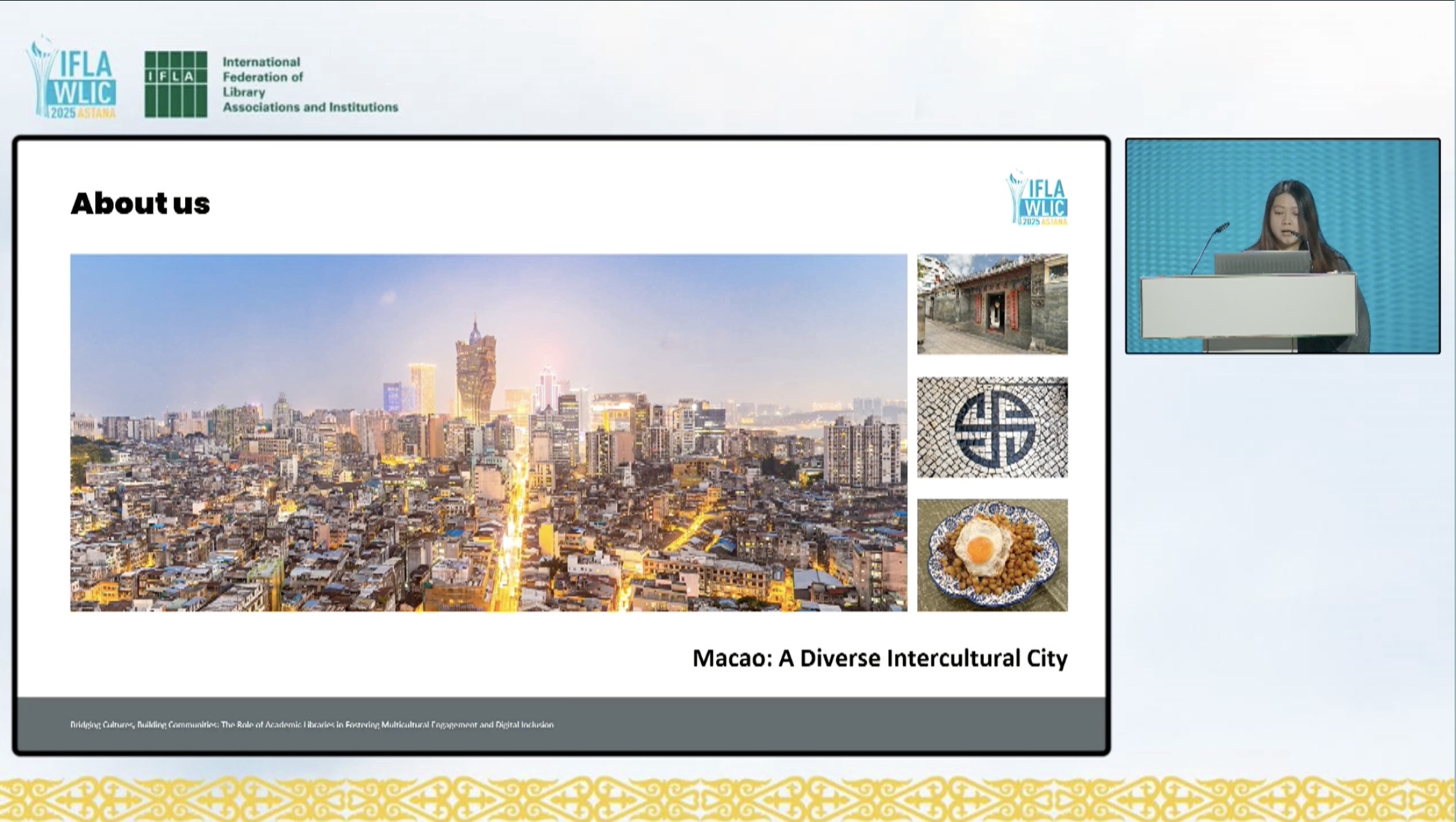在全球最大的圖書館專業盛會——IFLA世界圖書館與資訊大會上,今年以「凝聚知識,建構未來」為主題。李海琪副館長於區域發展議題上探討澳門作為多元文化交匯城市的實踐經驗,闡釋圖書館如何整合語言與文化資源推動數字包容,並促進多元群體的資訊平等。