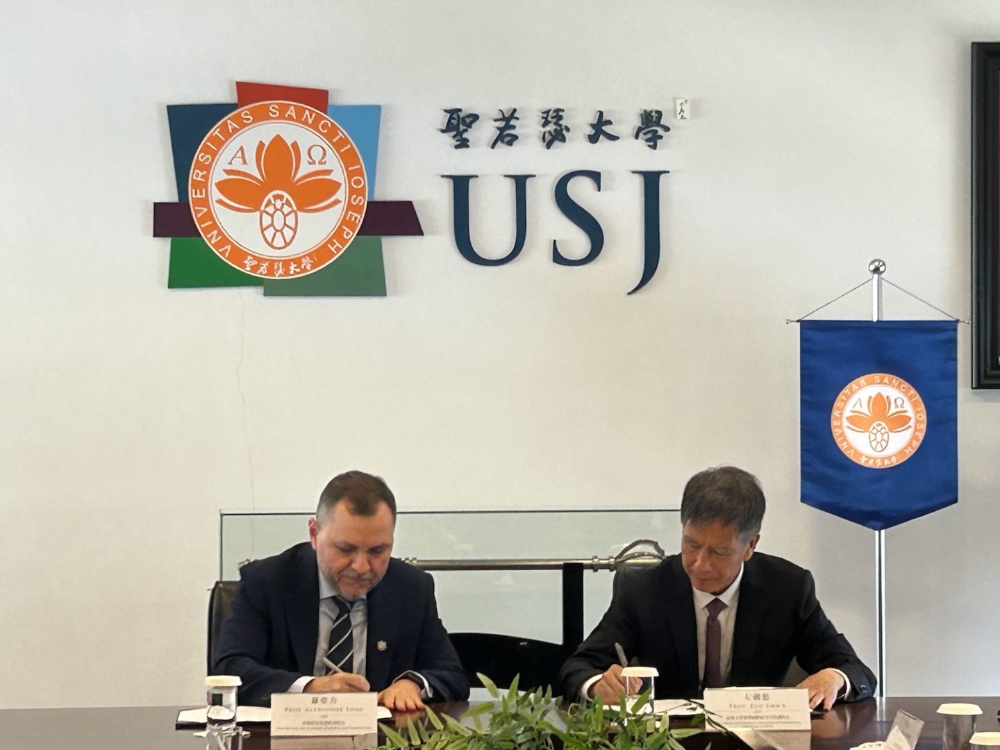 簽署儀式於聖若瑟大學舉行,由聖大副校長羅亞力(Alexandre Lobo)教授與左劍惡副院長共同代表簽署。出席儀式的還包括聖若瑟大學資料工程與科學學院副院長戴劍飆教授、大學發展處處長蔡智明教授、培訓及持續進修處處長葉子恆先生、招生事務處處長李志恆先生,以及清華大學深圳國際研究生院海洋工程研究院王勇何院長、全球事務辦公室國際合作與交流主管舒麗女士、法文學院。